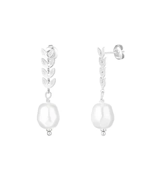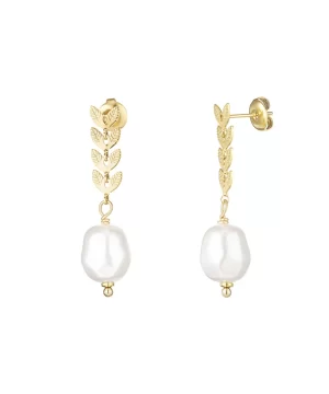 Elevate your look with the delicate charm of these earrings. Crafted from durable stainless steel, each earring features intricately carved leaves that fall gracefully, ending with a luminous imitation pearl for a touch of elegance.